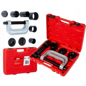 Przyrząd przeznaczony do montażu lub demontażu elementów wciskanych takich jak przeguby kulowe, sworznie szczęk hamulcowych, itp. Narzędzia wykonano z żeliwa i hartowanej stali węglowej Całość zestawu zapakowano w solidną walizkę z tworzywa sztucznego.