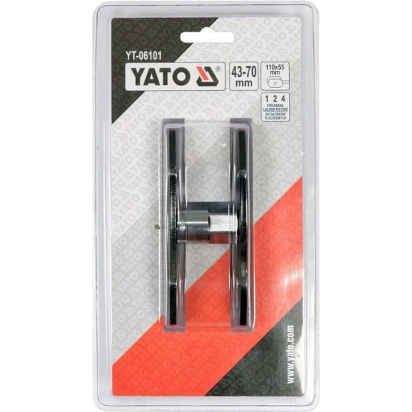 Separator do zacisków hamulcowych YT-06101 doskonale sprawdzi się z zaciskami 1, 2 lub 4 tłoczkami wciskanymi równocześnie. Rekomendowany do serwisów samochodowych. Mechanizm śrubowy wciska tłoczki z dużą siłą, nie obciążając użytkownika i gwarantuje łatwą i swobodną pracę. Mechanizm separatora eliminuje nierównoległe wciskanie tłoczków bez ryzyka ich blokowania. Zakres rozpychania tłoczków:43–70 mm.
