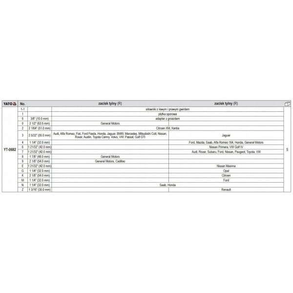 YATO ZESTAW DO WYCISKANIA NAPRAWY TŁOCZKÓW HAMULCOWYCH DEMONTAŻU YT-0682