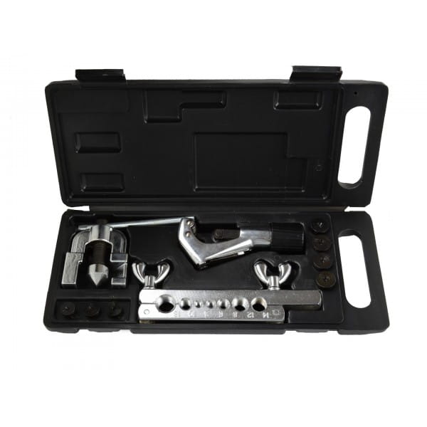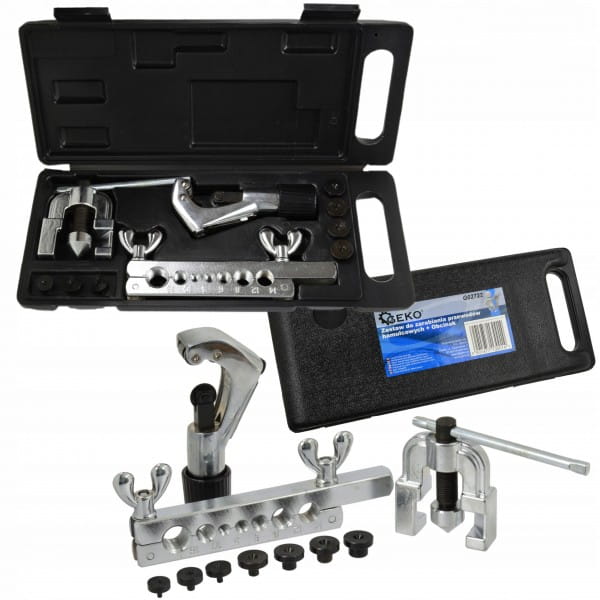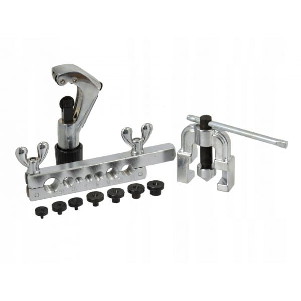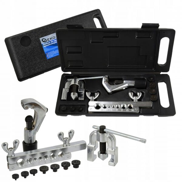 Zestaw do zarabiania przewodów hamulcowych i paliwowych. Nadaje się do cięcia i kielichowania miedzianych, mosiężnych, aluminiowych rurek i przewodów o ściankach o grubości do 1mm.