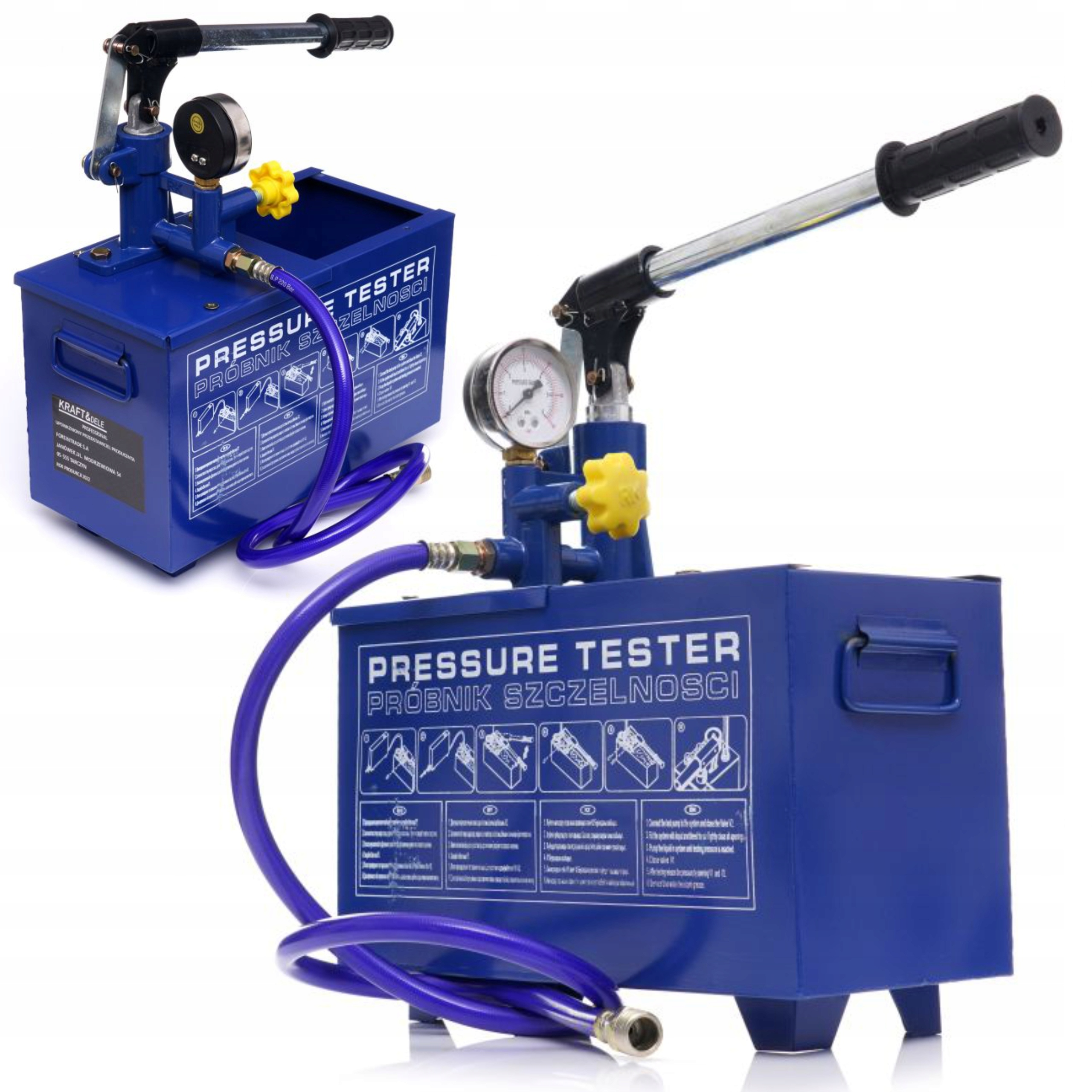 Pompa do prób ciśnieniowych marki Kraft&Dele model KD10479 to precyzyjne narzędzie wykorzystywane do wykonywania prób ciśnieniowych, prób szczelności w instalacjach sanitarnych przy użyciu wody lub oleju jako cieczy testowej przy maksymalnym ciśnieniu testowym 50bar.