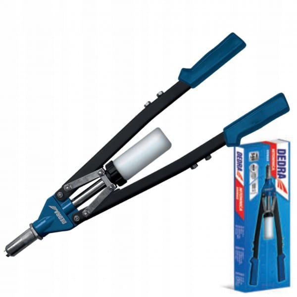 Nitownica to jedno z przydatniejszych narzędzi w każdym warsztacie. Pozwala szybko i trwale połączyć elementy poprzez przeciśnięcie i rozklepanie metalowego trzpienia przeprowadzonego przez otwór w dwóch złączanych powierzchniach materiałów. Nitownica czołowa do nitów aluminiowych DEDRA 11Y022 dzięki specjalnej konstrukcji pozwala na wygodną i efektywną pracę w miejscach o ograniczonej przestrzeni. proste długie ramiona pozwalają na pracę w miejscach w których klasyczna pistoletowa nitownica nie jest możliwa do wykorzystania. 5 wymiennych końcówek pozwalają na dobór średnicy nitu do konkretnego otworu - mocowane są w korpusie nitownicy, dzięki czemu są one zawsze pod ręką i trudniej je zgubić. Dzięki wbudowanemu pojemnikowi na odcięte elementy, praca nitownicą jest nie tylko szybka i wygodna, ale również nie wymaga dodatkowego sprzątania po wykonanej pracy. Korpus nitownicy jest wykonany z aluminium co zapewnia odpowiednią wytrzymałość i niską wagę. 540mm długości ramiona pozwalają na efektywną pracę nawet przy wykorzystaniu największego rozmiaru nitu. Rączki zostały wykończone profilowanym tworzywem sztucznym zwiększającym komfort użytkowania. Potrójne szczęki nitownicy wykonano ze stali chromowo molibdenowej (20CrMo) co zapewnia zwiększoną wytrzymałość i większą elastyczność niż tradycyjna stal (są mniej kruche, mniej podatne na uszkodzenia)