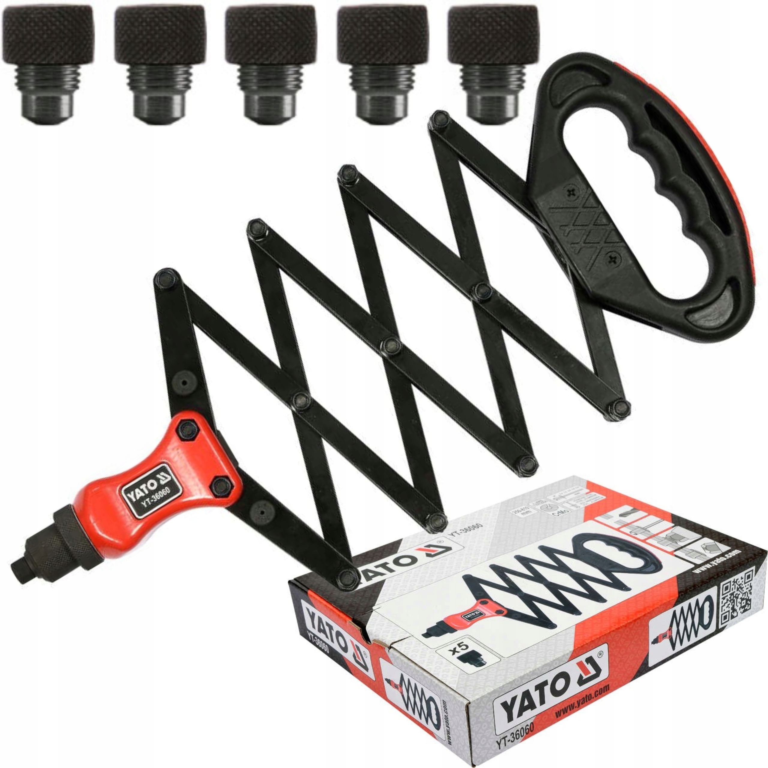Nitownica harmonijkowa marki YATO przeznaczona do obsługi nitów ze stali, stali nierdzewnej i aluminium.