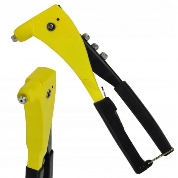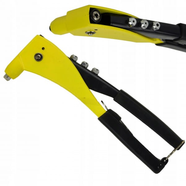 Solidna nitownica ręczna przystosowana do nitów aluminiowych jak i miedzianych o wymiarach 2,4/3,2/4,0/4,8 mm. Jest to narzędzie przydatne praktycznie w każdym domu, służące do łączenia dwóch materiałów ze sobą na przykład: płaskowników stalowych, aluminiowych, skóry, PCV, blach i innych materiałów. Nitownica została wyposażona w liczne wzmocnione elementy co zapewnia dłuższą żywotność, a ergonomiczna gumowana rękojeść zapewnia pewny i wygodny chwyt. W zestawie znajdują sie 4 wymienne końcówki o rozmiarach: 2,4 / 3,2 / 4,0 / 4,8 mm. Do nitownicy dołączony jest kluczyk do wymiany końcówek.