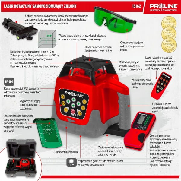PROLINE LASER ROTACYJNY SAMOPOZIOMUJĄCY NIWELATOR ZIELONY 30M WALIZKA 15162