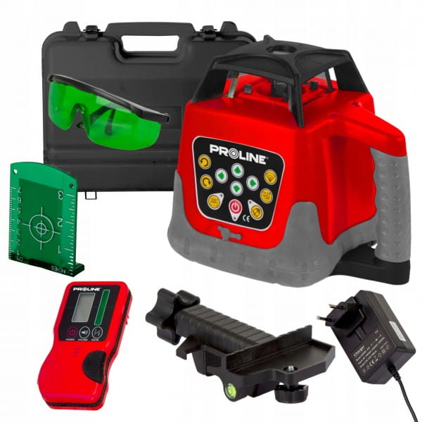 - Laser rotacyjny Proline to wszechstronne i wielofunkcyjne narzędzie do realizacji prac wewnątrz pomieszczeń oraz do pracy na otwartych przestrzeniach