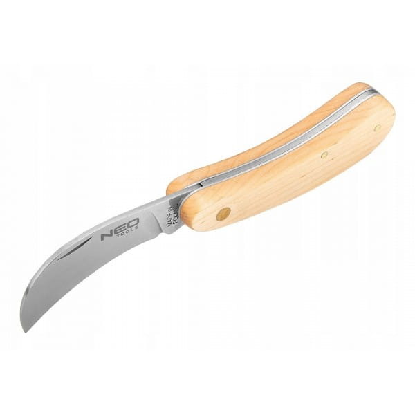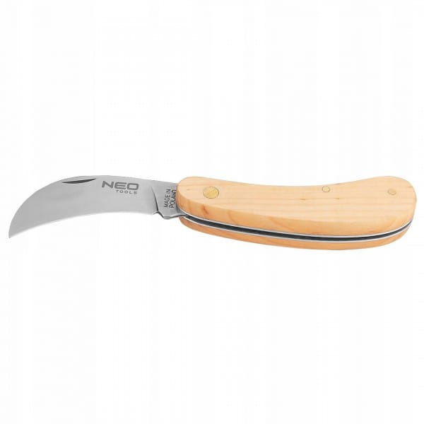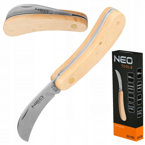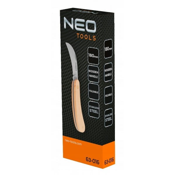 Nóż monterski sierpak, drewniane okładki 63-016 NEO to uniwersalny nóż w typie sierpak o całkowitej długości 180 mm. Solidne, zakrzywione ostrze ze stali nierdzewnej posiada specjalne wgłębienie, ułatwiające precyzyjne nacinanie. Nóż doskonale sprawdzi się w rozmaitych pracach instalacyjnych, warsztatowych oraz ogrodowych. Ostrze o długości 80 mm wyposażone jest w blokadę, co wpływa na bezpieczeństwo i komfort użytkowania.