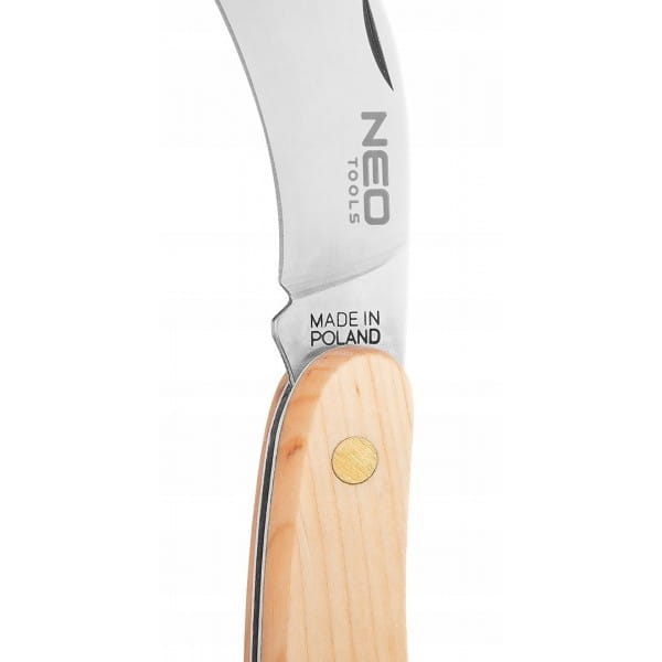 Ten model noża monterskiego posiada okładki z drewna olchowego, pełniące rolę wygodnej rękojeści. Nadają one przedmiotowi klasyczny, ponadczasowy wygląd oraz wpływają na jego większą trwałość – podobnie jak stalowe nity. Nóż monterski sierpak od marki NEO to wykonany w Polsce produkt, który sprawdzi się w wielu codziennych sytuacjach.