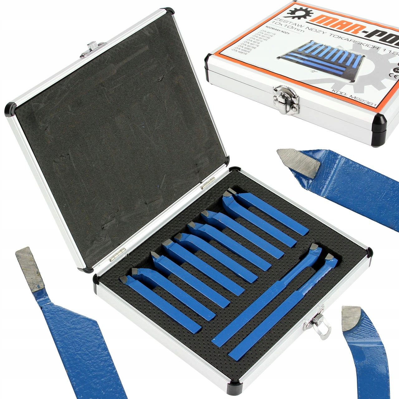 Zestaw 11 sztuk noży tokarskich 10x10mm w praktycznym, metalowym etui.