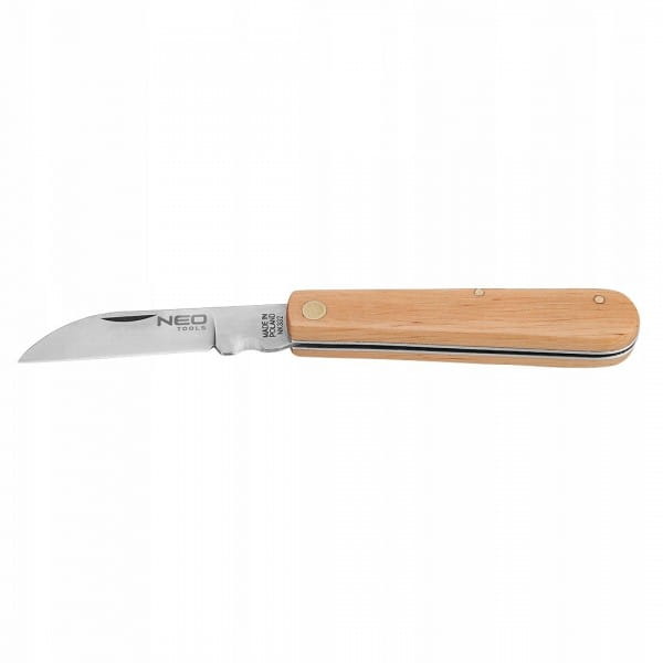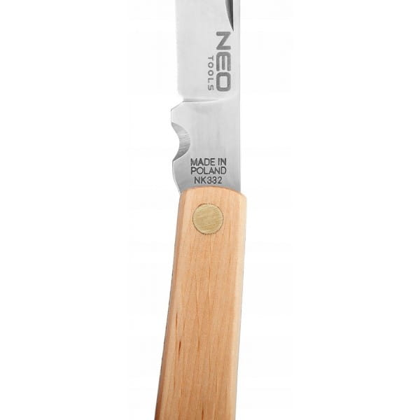 Ten model noża monterskiego posiada drewniane okładki wykonane z drewna olchy, pełniące rolę wygodnej rękojeści. Nadają one przedmiotowi klasyczny, ponadczasowy wygląd oraz wpływają na jego większą trwałość, podobnie jak stalowe nity. Nóż monterski od marki NEO sprawdzi się w wielu codziennych sytuacjach.