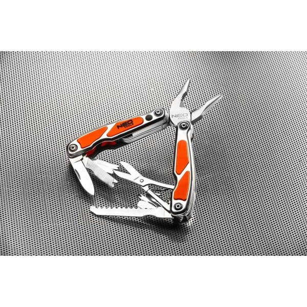 Narzędzie wielofunkcyjne NEO to innowacyjne rozwiązanie. W jednym narzędziu znajduje się 10 różnych funkcji, m.in. najpopularniejszy wkrętak PH2, ostry nóż niezbędny w wielu sytuacjach oraz potrzebny na wielu kempingachotwieracz do puszek i butelek. Umieszczone w praktycznym etui wykonanym z wytrzymałego nylonu ułatwiającym transport i przechowywanie..