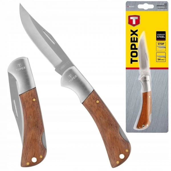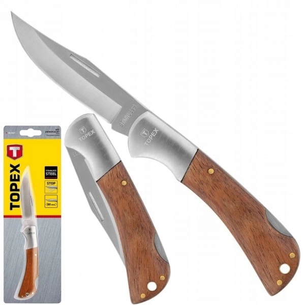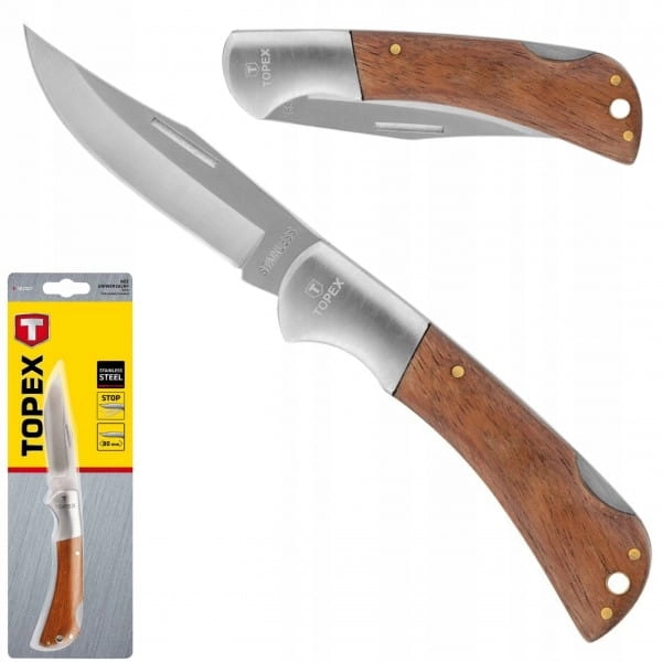 TOPEX NÓŻ SKŁADANY UNIWERSALNY STALOWE OSTRZE 8CM DREWNIANY UCHWYT 98Z007
