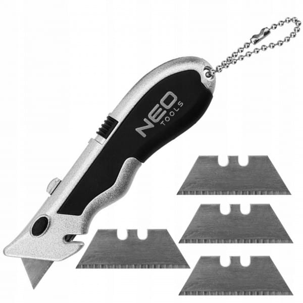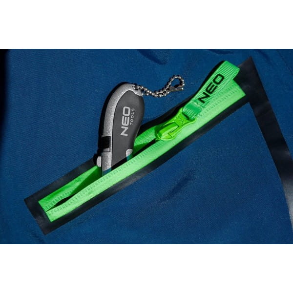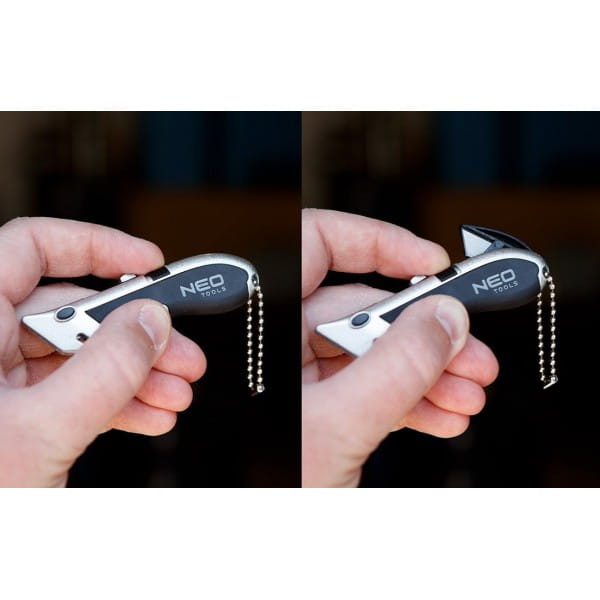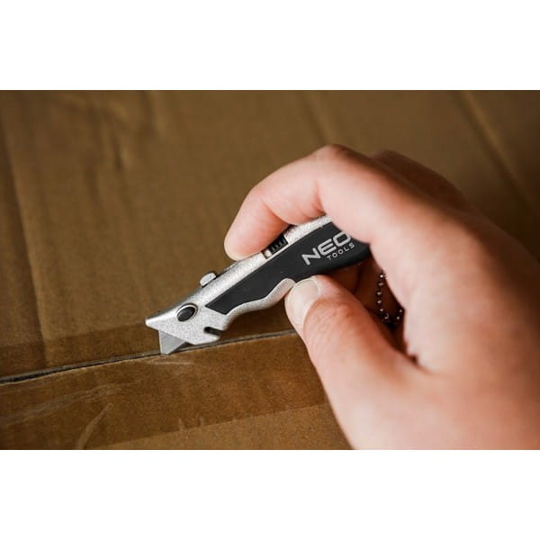 Łańcuszek do zawieszenia umożliwia przechowywanie noża w zasięgu ręki, na przykład przy kluczach, co czyni go łatwo dostępnym w każdej potrzebie. Dzięki swojej kompaktowej wielkości, nóż NEO TOOLS nie zajmuje dużo miejsca.