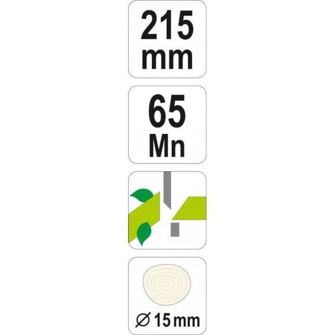Sekator nożycowy uniwersalny. Ostrze nożycowe umożliwia cięcie blisko łodygi. Do cięcia gałęzi o średnicy 15 mm. ostrze wykonane ze stali 65 Mn. Długość narzędzia 205 mm.