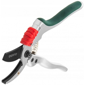 Sekator ogrodowy kowadełkowy aluminiowy VERTO (nr ref. 15G207) o długości 195 mm i średnicy cięcia do 18 mm. Przeznaczony do cięcia gałęzi i krzewów. Ergonomiczne odgięcie ostrzy o 15° znacznie ułatwia pracę oraz podnosi jej komfort. Ostrze pokryte powłoką teflonową, zapewniającą długą ochronę przed korozją. Aluminiowy korpus gwarantuje trwałość narzędzia.Blokada ostrza uniemożliwia otwieranie w niepożądanych momentach. Ergonomiczny uchwyt z tworzywa sztucznego pokryty antypoślizgowym materiałem zapewnia bezpieczeństwo i komfort podczas pracy.