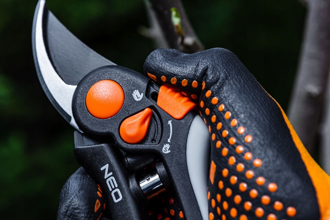 Sekator by-pass 200 mm, zakres do 18 mm, regulowany rozstaw 15-202 marki NEO jest narzędziem jednoręcznym, które wyposażono w regulowany rozstaw ostrzy, umożliwiający personalizację. Narzędzie posiada dodatkowo ergonomiczny uchwyt z miękkimi i gumowymi elementami oraz blokadę bezpieczeństwa, uruchamianą jednym przyciskiem. System by-pass ostrzy wpływa na większą precyzję użytkowania. Dzięki temu sekatorowi przytniesz delikatne gałęzie, pędy, krzewy, kwiaty oraz zioła. Posiada ostrze z wysokiej jakości stali hartowanej, przystosowane do świeżego drewna, które pokryto również nieprzywierającą powłoką PTFE. Polecane zarówno dla profesjonalistów jak i miłośników ogrodnictwa.