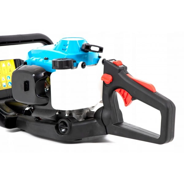 Nożyce spalinowe Handy Prime SPN260 są niewielkim, poręcznym modelem zaprojektowanym do przycinania gałązek krzewów, czy też żywopłotów w ogródkach oraz na innych prywatnych działkach i terenach, z wyłączeniem profesjonalnego zastosowania komercyjnego. Za przycinanie odpowiedzialna jest w nich listwa tnąca o długości roboczej 56 cm, wprawiana w ruch przez silnik 2-suwowy o pojemności 26 cm3. Urządzenie zyskuje dzięki temu moc 0,75 kW, co daje 7500 obr./min. Listwa tnąca posiada dwustronne ostrze. Zaleca się, aby przycinane gałęzie miały maksymalną średnicę 28 mm. Producent zastosował w nożycach spalinowych Handy Prime SPN260 ponadto szereg zabezpieczeń, mających na celu poprawę komfortu i bezpieczeństwa operatora maszyny. Należą do nich osłona dłoni oraz blokada włączenia, która uchroni Cię przed przypadkowym uruchomieniem sprzętu.