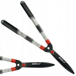Nożyce do żywopłotu 80A043 są przeznaczone do cięcia czy formowania żywopłotów. Falisty kształt ostrzy sprawia, że najlepiej sprawdzą się podczas cięcia żywopłotów z tui czy świerka. Specjalny kształt ostrzy sprawia, że gałęzie nie wysuwają i nie kleszczą się podczas cięcia.Ostrza wykonane z wytrzymałej stali, dodatkowo pokryte powłoką teflonową, która zapobiega przywieraniu oraz zabezpiecza ostrze przed korozją.Teleskopowe ramiona nożyc dodatkowo zwiększają zasięg i pozwalają dosięgnąć do wysoko położonych pędów czy gałęzi. Uchwyt wykonany z aluminium wyposażony w wygodną dwumateriałową rękojeść. W celu zmniejszenia wstrząsów podczas cięcia gałęzi nożyce posiadaja amortyzujące odbojniki.