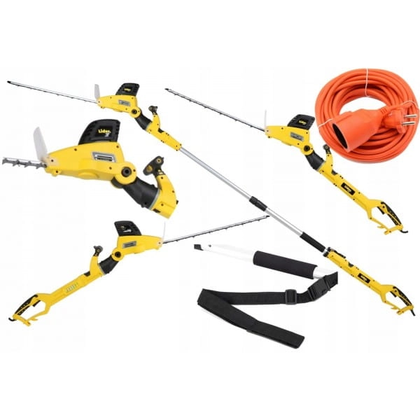 Nożyce elektryczne Lider Plus NGW 710 pozwolą Ci na przycinanie gałązek żywopłotów w nieprofesjonalnych warunkach, dzięki czemu idealnie nadadzą się do wykorzystania na działkach lub w ogrodach. Opisywany model pracuje na silniku 710 W. Cięcie możliwe jest dzięki listwie tnącej o długości roboczej 51 cm. Obydwie strony listwy dają możliwość wykonywania cięcia. Maksymalna średnica gałęzi, do których przystosowane zostało urządzenie, wynosi 27 mm. Użytkownik może też wyregulować kąt pracy nożyc. Największą zaletą nożyc elektrycznych Lider Plus NGW 710 jest jednak teleskopowy wysięgnik regulowany w zakresie 150-280 cm. Oznacza to w praktyce możliwość przycinania nawet wysokich żywopłotów bez konieczności wykorzystania drabiny. Jest to rozwiązanie oczywiście nie tylko wygodniejsze dla użytkownika, ale też poprawiające bezpieczeństwo pracy. Ponadto można pracować z nożycami również bez wykorzystania wysięgnika.