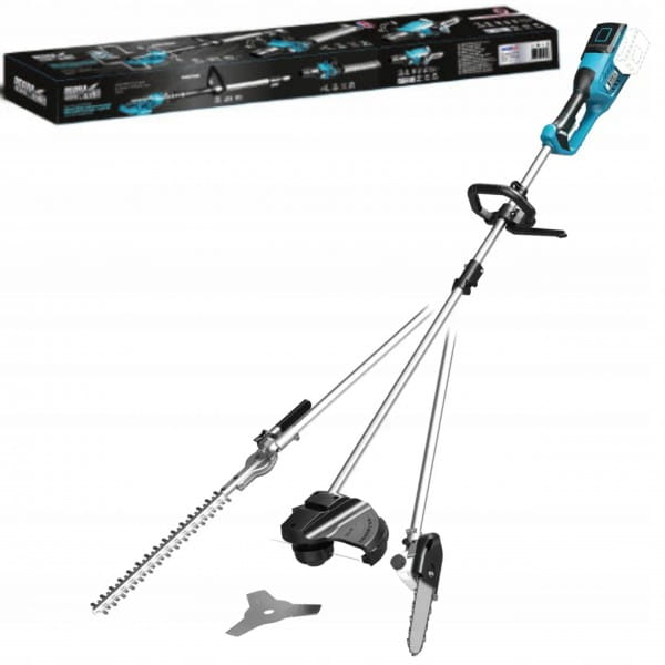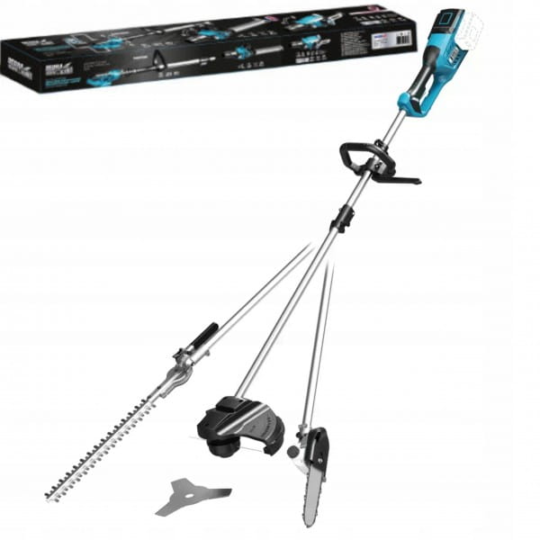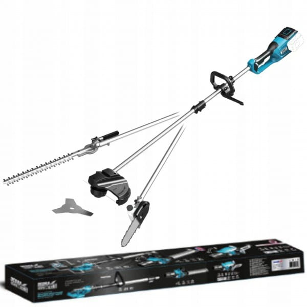 Urządzenie wielofunkcyjne 4w1 to połączenie nożyc do żywopłotu, pilarki na wysięgniku, podkaszarki oraz wykaszarki. To narzędzie, które znajdzie swoje zastosowanie w ogrodzie czy sadzie.