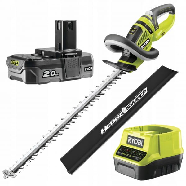 Akumulatorowe nożyce do żywopłotu Ryobi to kompletacja stawiająca na lekkość. Wydajny silnik generujący wysoki moment obrotowy w połączeniu z funkcją piłowania zapewniają sprawne przycinanie żywopłotów, nawet tych starszych o grubych gałęziach. Rozstaw noży 22mm i system Anti-jam umożliwia skuteczne cięcie bez ryzyka zakleszczenia ostrza. Długość części roboczej łączy dużą efektywność z przyzwoitą manewrowością i jest optymalna do pracy z ponad metrowymi krzewami. Dzięki obrotowej rękojeści głównej pozycja operatora jest zawsze ergonomiczna i komfortowa, a nasadka HedgeSweep zgarnia ścinki, zanim opadną na żywopłot. To proste rozwiązanie bardzo przyśpiesza porządkowanie ogrodu po strzyżeniu żywopłotów. Maszyna wykonana jest w technologii akumulatorowej ONE+ dzięki czemu jest kompatybilna ze wszystkimi trzpieniowymi akumulatorami 18V Ryobi, jakie pojawiły się na rynku na przestrzeni ostatnich kilkudziesięciu lat. Lekki akumulator 2.0Ah minimalizuje masę urządzenia i jest praktycznym zasilaniem dla innych maszyn Ryobi takich jak wiertarko-wkrętarka, multitool czy odkurzacz samochodowy.