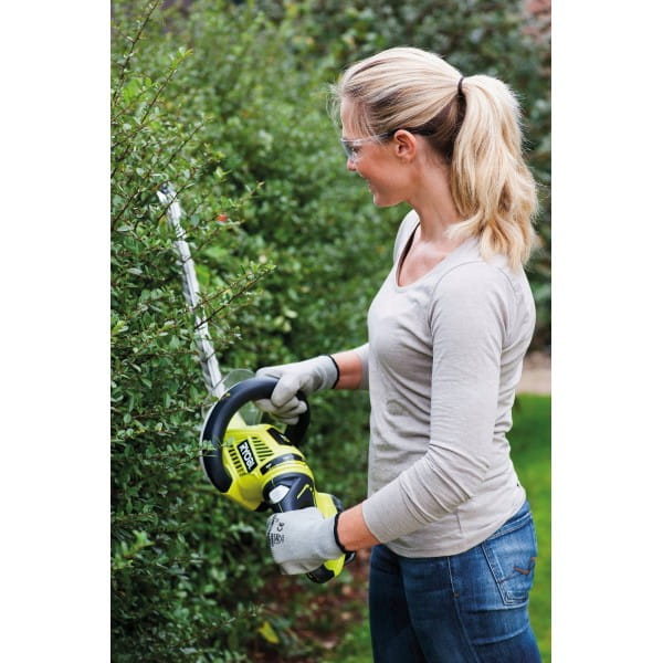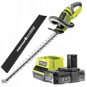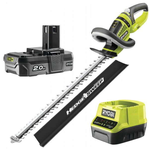 Akumulatorowe nożyce do żywopłotu Ryobi to kompletacja stawiająca na lekkość. Wydajny silnik generujący wysoki moment obrotowy w połączeniu z funkcją piłowania zapewniają sprawne przycinanie żywopłotów, nawet tych starszych o grubych gałęziach. Rozstaw noży 22mm i system Anti-jam umożliwia skuteczne cięcie bez ryzyka zakleszczenia ostrza. Długość części roboczej łączy dużą efektywność z przyzwoitą manewrowością i jest optymalna do pracy z ponad metrowymi krzewami. Dzięki obrotowej rękojeści głównej pozycja operatora jest zawsze ergonomiczna i komfortowa, a nasadka HedgeSweep zgarnia ścinki, zanim opadną na żywopłot. To proste rozwiązanie bardzo przyśpiesza porządkowanie ogrodu po strzyżeniu żywopłotów. Maszyna wykonana jest w technologii akumulatorowej ONE+ dzięki czemu jest kompatybilna ze wszystkimi trzpieniowymi akumulatorami 18V Ryobi, jakie pojawiły się na rynku na przestrzeni ostatnich kilkudziesięciu lat. Lekki akumulator 2.0Ah minimalizuje masę urządzenia i jest praktycznym zasilaniem dla innych maszyn Ryobi takich jak wiertarko-wkrętarka, multitool czy odkurzacz samochodowy.