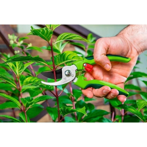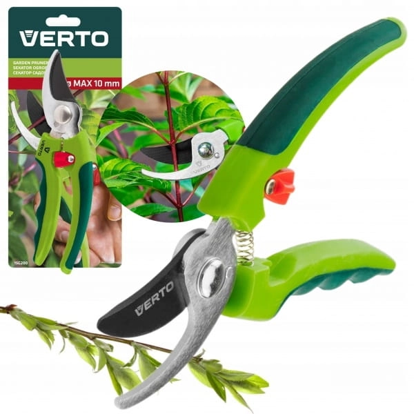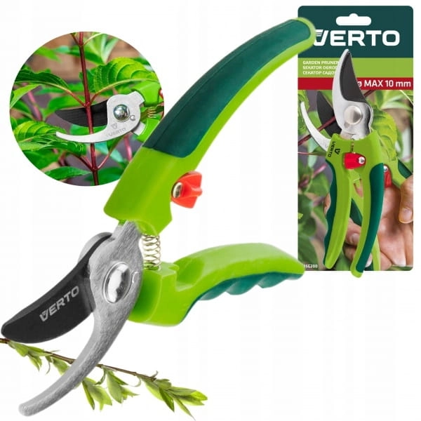 Sekator ogrodowy uniwersalny 185 mm, średnica cięcia 10 mm 15G200 VERTO to niezwykle przydatne narzędzie jednoręczne o maksymalnej średnicy cięcia 10 mm. Polecane do każdego ogrodu, na działkę, na taras lub na balkon. Z jego pomocą możliwe jest precyzyjne podcięcie kwiatów, gałązek lub krzewów.