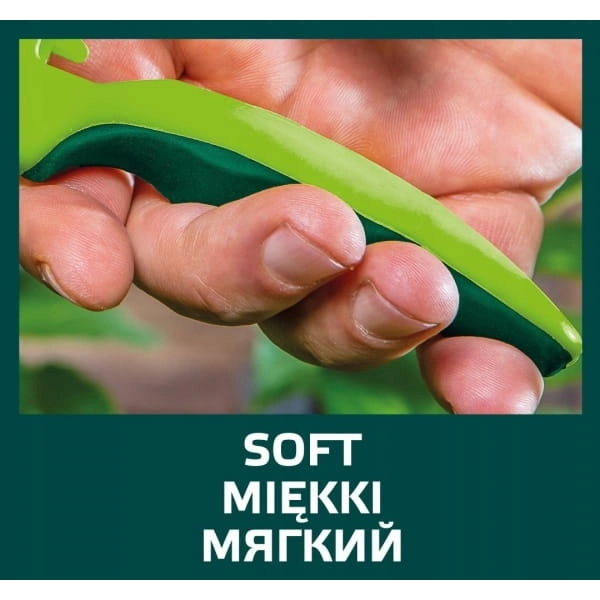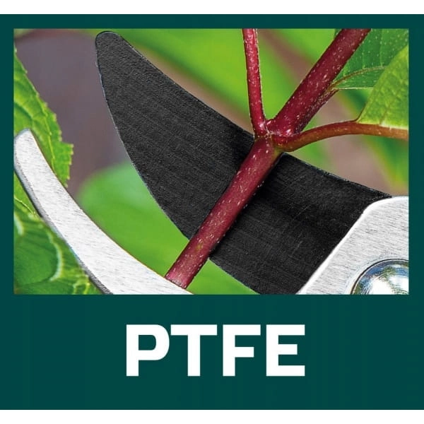Ostrze o długości 42 mm pokryte zostało teflonową powłoką, przeciwdziałającą przywieraniu oraz wstrzymujące korozję. Sekator posiada dwumateriałową rękojeść i uchwyt pokryty antypoślizgową gumą. Narzędzie pewnie leży w dłoni, a wbudowana w jego korpus blokada zapewnia bezpieczeństwo użytkowania.