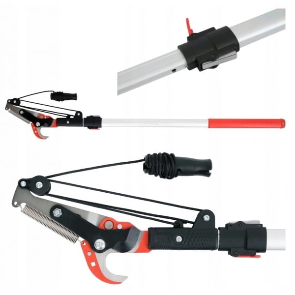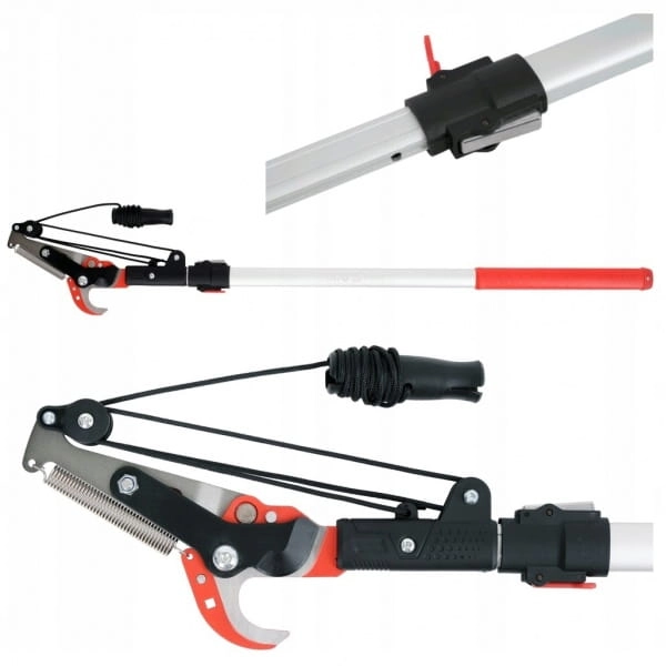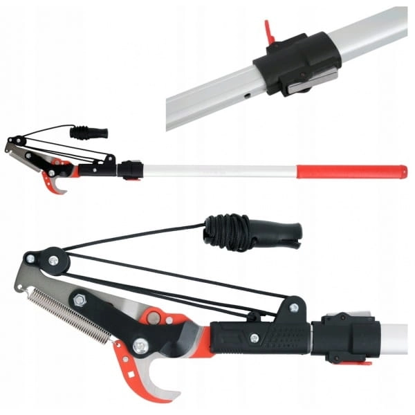 Teleskopowy sekator gąsienicowy przeznaczony do cięcia gałęzi o średnicy do 35 mm. Ostrze wykonane z odpornej stali 65 Mn, pokryte w górnej części powłoką PTFE, zmniejsza tarcie podczas cięcia. Trzonek teleskopowy z wysokiej jakości stopu aluminium umożliwia ustawienie długości w dwóch pozycjach, zwiększając zasięg pracy.