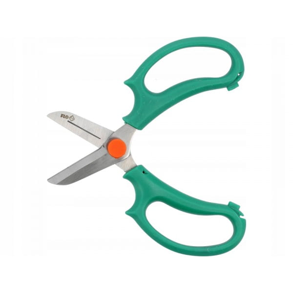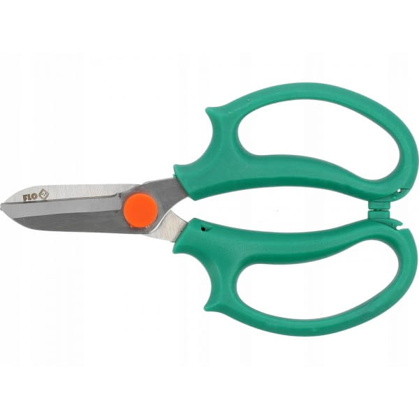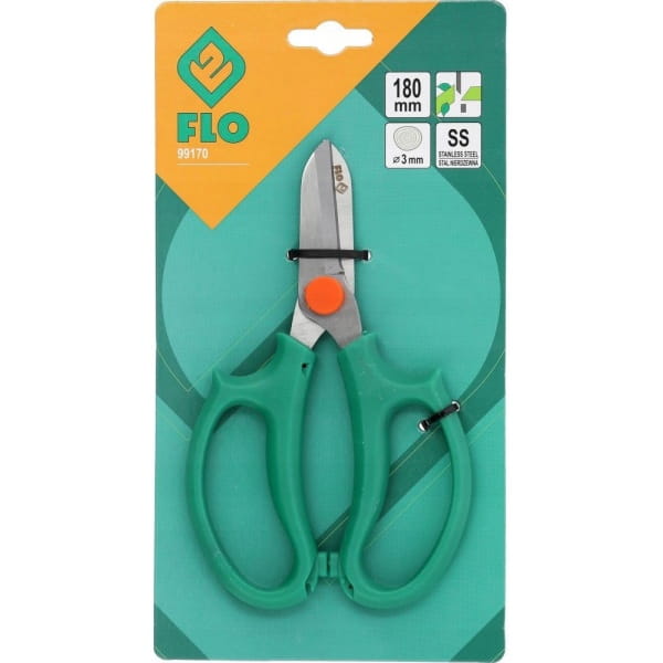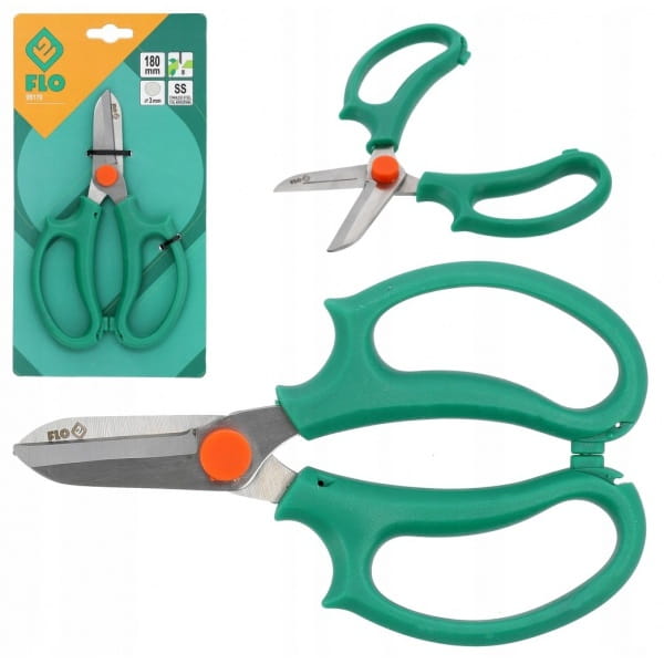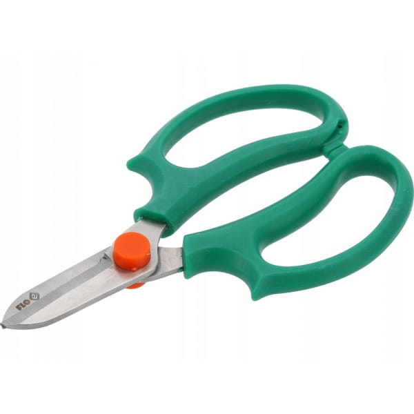 Uniwersalne nożyczki ogrodnicze FLO o całkowitej długości 180 mm przeznaczone do precyzyjnego cięcia roślin, kwiatów oraz drobnych elementów z papieru, kartonu, tworzyw czy tkanin.