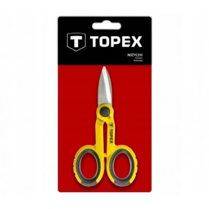 Nożyce TOPEX (nr ref. 32D413) bardzo przydatne przy pracach remontowych oraz podczas majsterkowania. Ostrza wykonane z wysokiej jakości hartowanej stali nierdzewnej, co zapewnia długą żywotność narzędzia. Gumowane uchwyty sprawiają, że nożyczki dobrze leżą w dłoni i nie wyślizgują się, co podnosi komfort pracy. Marka TOPEX skierowana jest do majsterkowiczów.