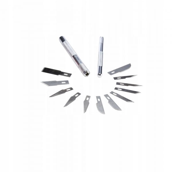 Zestaw noży precyzyjnych 12szt. do różnych materiałów i szerokiej skali zastosowań w praktycznym etui.