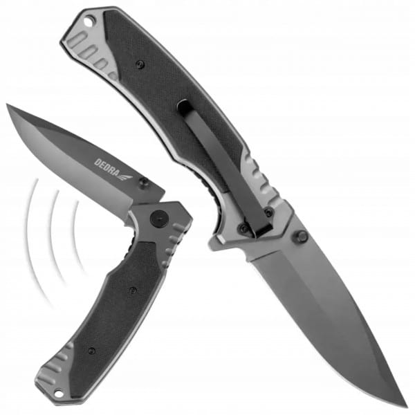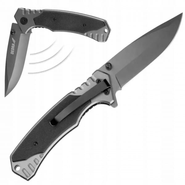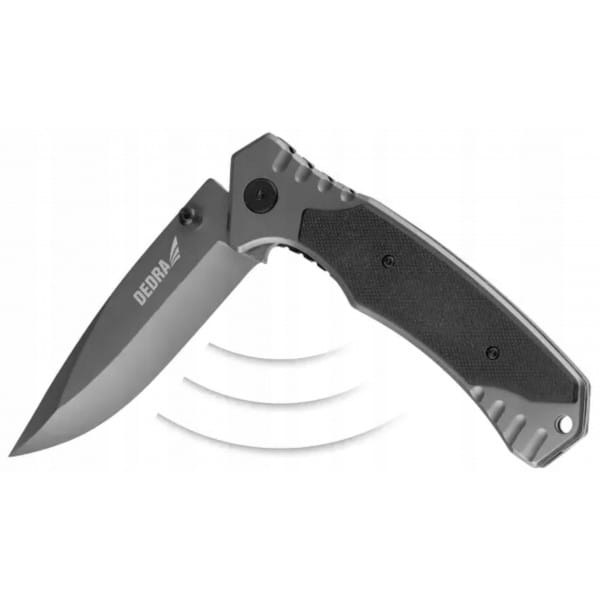Nóż składany z blokadą DEDRA M9080 to narzędzie łączące w sobie doskonałe właściwości materiałów, zapewniające funkcjonalność, trwałość i wytrzymałość na uszkodzenia.
