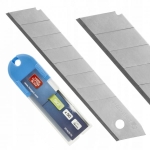 Komplet 50 stalowych ostrzy łamanych stosowanych w nożach wysuwanych. Do cięcia kartonów, tapet, wykładzin, tkanin plandekowych, folii drukarskich oraz folii PCW itp.