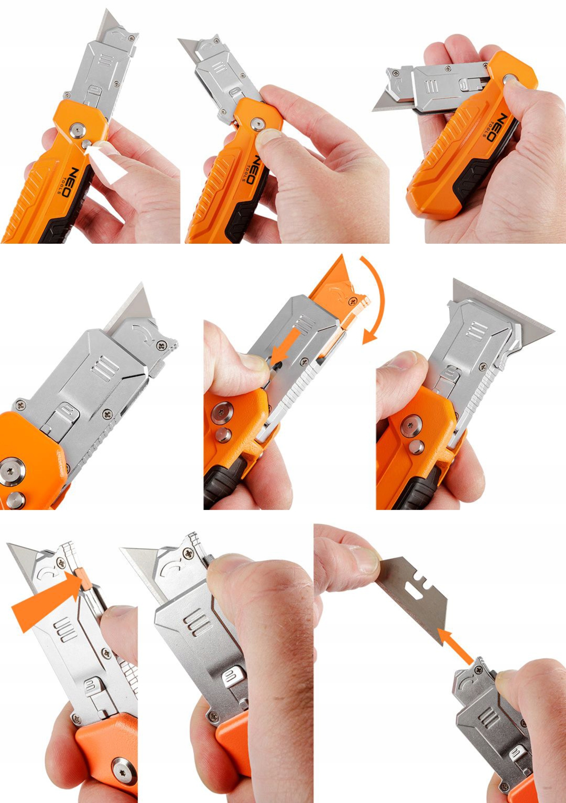 NEO NÓŻ SKŁADANY OSTRZE WYMIENNE RAPEZOWE ZE SKROBAKIEM +2x OSTRZA 63-708