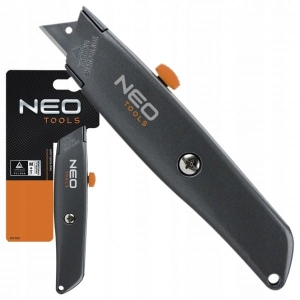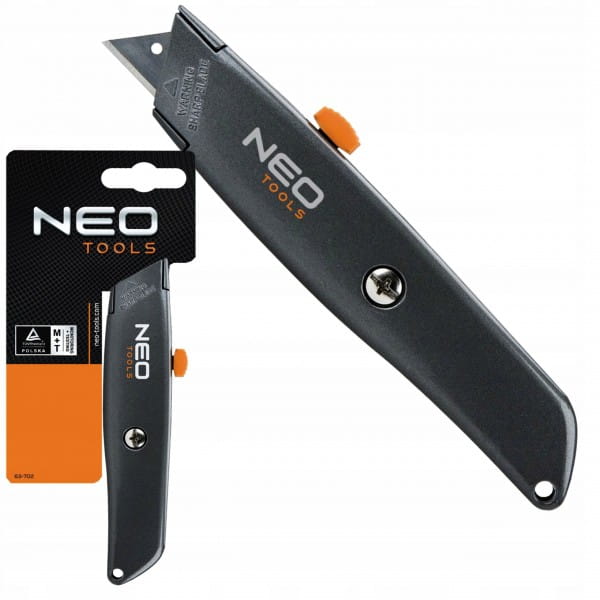 Nóż z ostrzem trapezowym NEO (nr ref. 63-702) do współpracy z ostrzami trapezowymi o szerokości 18 mm. Metalowa prowadnica i solidna metalowa konstrukcja korpusu zapewniają długą żywotność narzędzia i umożliwiają cięcie wymagające dużego nakładu sił. Uchwyt o ergonomicznym kształcie zapewnia bezpieczeństwo i komfort podczas pracy. Gwarantem wysokiej jakości i niezawodności produktu jest certyfikat TÜV Rheinland. Marka NEO spełnia oczekiwania profesjonalistów.