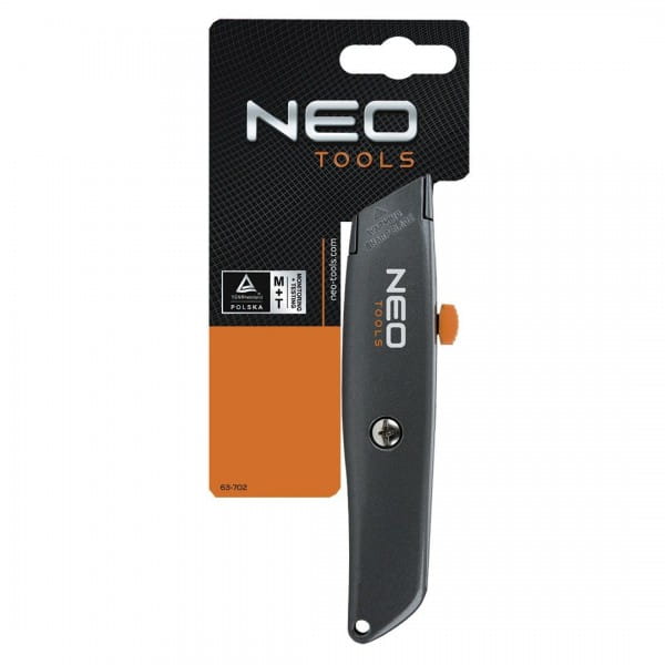 Nóż z ostrzem trapezowym NEO (nr ref. 63-702) do współpracy z ostrzami trapezowymi o szerokości 18 mm. Metalowa prowadnica i solidna metalowa konstrukcja korpusu zapewniają długą żywotność narzędzia i umożliwiają cięcie wymagające dużego nakładu sił. Uchwyt o ergonomicznym kształcie zapewnia bezpieczeństwo i komfort podczas pracy. Gwarantem wysokiej jakości i niezawodności produktu jest certyfikat TÜV Rheinland. Marka NEO spełnia oczekiwania profesjonalistów.
