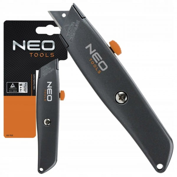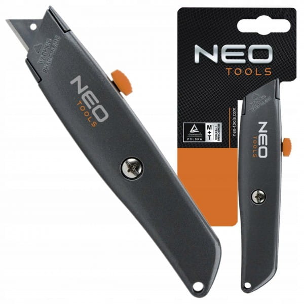 NEO TAPECIAK NÓŻ NOŻYK Z OSTRZEM TRAPEZOWYM CHOWANYM METALOWY KORPUS 63-702
