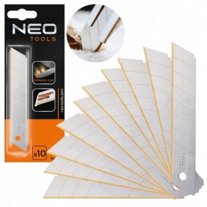 Ostrza łamane wymienne NEO (nr ref. 64-020) o szerokości 18 mm i grubości 0.5 mm to wymienne części do noży. Krawędzie tnące pokryte tytanem, co przedłuża żywotność narzędzia. W komplecie znajduje się 10 sztuk. Marka NEO spełnia oczekiwania profesjonalistów.