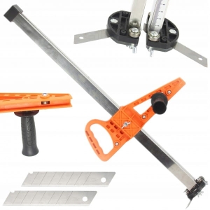 Posiada dwa noże tnące o długości oraz rękojeść prowadzącą. Do szybkiego, precyzyjnego przecinania płyt g/k. Odcinając pas płyty, nakładamy na nią nóż i przesuwając, nacinamy ją równocześnie z obu stron. Zapewnia to znakomitą precyzję cięcia i skrócenie czasu pracy.