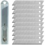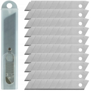 ️Komplet 10 stalowych ostrzy łamanych stosowanych w nożach wysuwanych. Do cięcia kartonów, tapet, wykładzin, tkanin plandekowych, folii drukarskich oraz folii PCW itp.