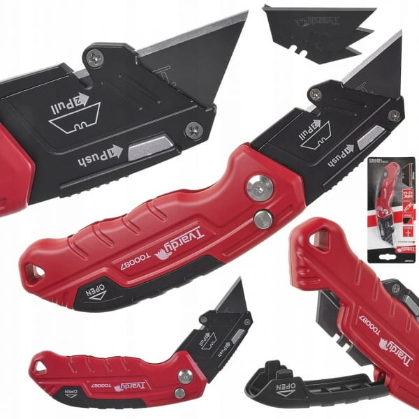 - Informacje dodatkowe: 3-pozycyjna blokada ostrza, schowek na zapasowe ostrza, w zestawie 1+3 ostrza