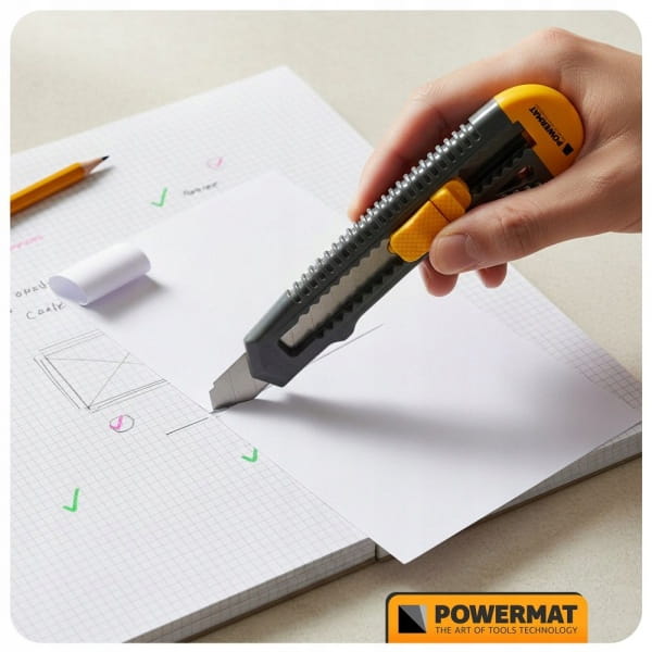Narzędzie doskonale sprawdza się przy cięciu tapet, papieru, kartonu, folii, tkanin, skóry oraz cienkich tworzyw sztucznych.