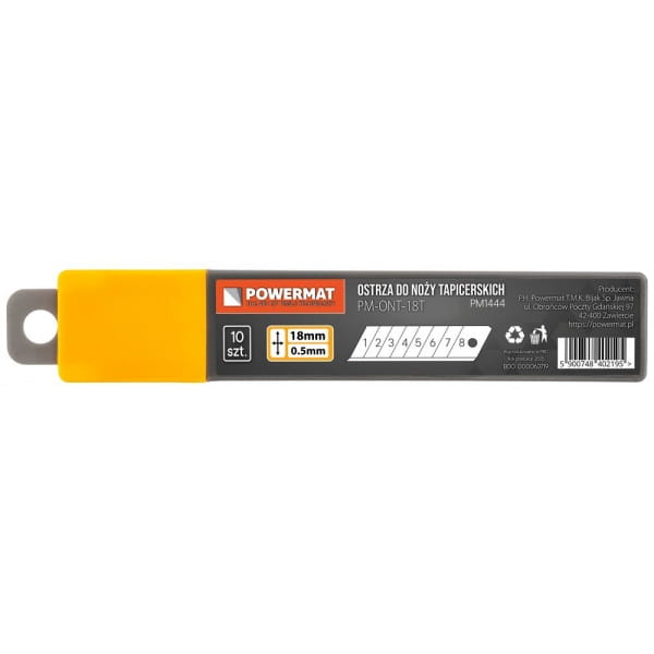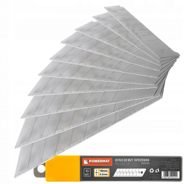 Ostrza pasują do większości noży tapicerskich 18 mm, w tym modeli marki Powermat oraz narzędzi innych producentów.