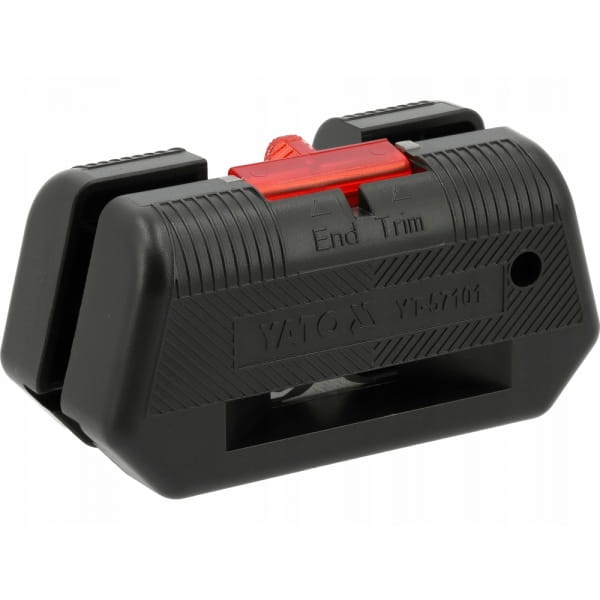 Profesjonalny obcinak dwustronny YATO przeznaczony do odcinania nadmiaru okleiny z krawędzi płyt meblowych.