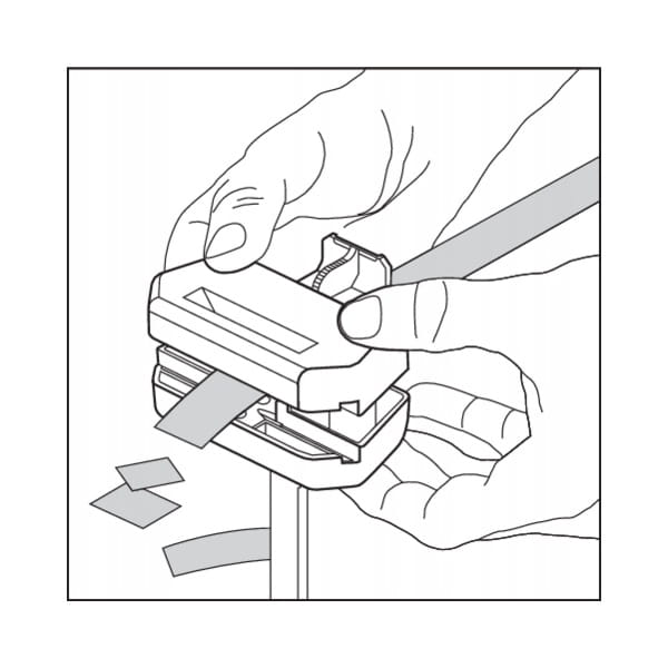 Dodatkowe ostrze umożliwia dokładne odcięcie taśmy od czoła obcinaka, co zwiększa precyzję i wygodę użytkowania.