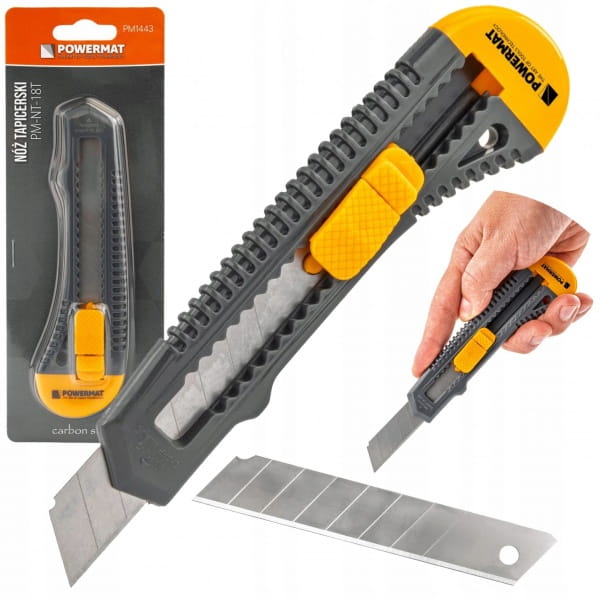 NÓŻ DO TAPET NOŻYK TAPICERSKI OSTRZE TAPECIAK 18MM WYSUWANE ŁAMANE OSTRZE