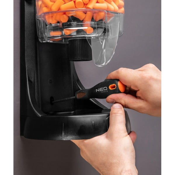 Dozownik z wkładkami przeciwhałasowymi 38dB, 500 par 97-551 NEO to opakowanie zbiorcze aż 500 par, czyli 1000 pojedynczych wkładek przeciwhałasowych, przystosowanych do pracy z wysokim natężeniem hałasu. Redukują dźwięki otoczenia aż o 38 dB. Polecane są do stosowania w zakładach produkcyjnych, magazynach, warsztatach oraz na placach budowy.