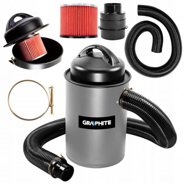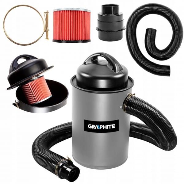 Odciąg wiórów i trocin 1100 W, 50 L, 59G611 GRAPHITE to profesjonalne urządzenie do oczyszczania przestrzeni z wiórów drzewnych, pyłów oraz trocin w warsztacie. Charakteryzuje się wysoką mocą silnika 1100 W oraz zbiornikiem o pojemności 50 litrów. Doskonale sprawdzi się podczas pracy z drewnem celulozowym, płytami wiórowymi lub płytami MDF. Długość węża ssącego wynosi 2 m, umożliwiając wygodne ustawienie odciągu w przestrzeni warsztatowej. Moc ssania wynosi 2,5 kPa.