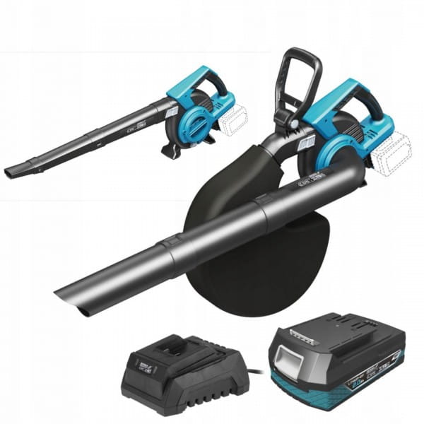 To idealne narzędzie do wykorzystania w warsztacie, garażu i do różnego rodzaju prac przydomowych zwłaszcza w ogrodzie. Przepływ powietrza wynoszący 550m3/h zapewnia dużą siłę wydmuchu, która przekłada się na wydajność pracy tym urządzeniem. Powietrze wydmuchiwane jest z prędkością 270km/h co sprawia, że nawet najcięższe, najbardziej rozmoczone liście zostaną sprawnie i szybko zamiecione na stertę. Zagarnięte liście, trawę i inne pozostałości uprzątniemy przełączając dmuchawę w tryb odkurzania, zbierając wszystkie zanieczyszczenia do worka. Obudowa wykonana została z nylonu z domieszką włókna szklanego, dzięki temu zwiększona została odporność na uszkodzenia mechaniczne i promieniowanie UV. Urządzenie zostały wyposażone w silnik bezszczotkowy co zapewnia większą wydajność i efektywność w porównaniu z klasycznymi silnikami szczotkowymi. Dmuchawa z funkcją odkurzacza zasilana jest dwoma akumulatorami SAS+ALL..